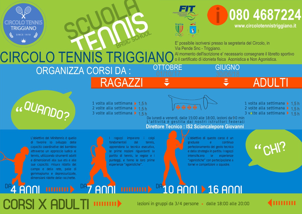 I Nostri Corsi hanno come obiettivo quello di insegnare gradualmente le tecniche di gioco del tennis, tenendo conto dell’età, delle possibilità fisiche e delle attitudini secondo le regole della Federazione Italiana Tennis. La SAT, strutturata in cinque fasce in base al livello di gioco, con i suoi maestri e un preparatore atletico, da vita a un vero e proprio vivaio sportivo e da la possibilità a ogni allievo di migliorare e sviluppare le proprie capacità .